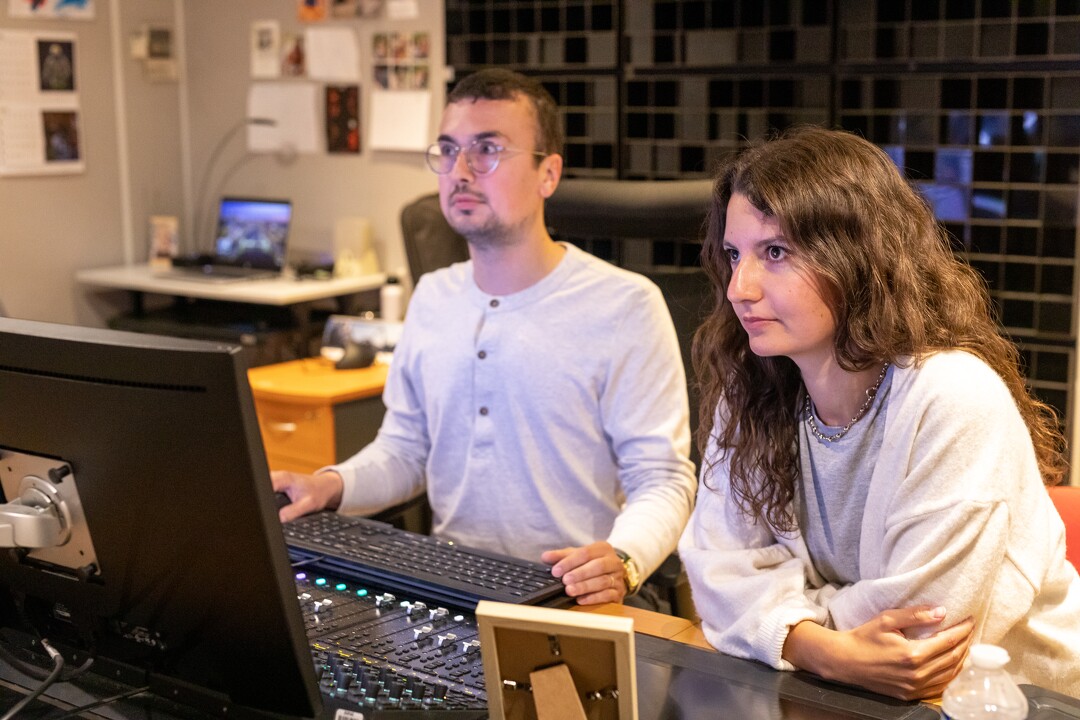 Après plusieurs mois de recherche sur la plateforme en ligne et de montage vidéo, Alicia Pifre est arrivée au dénouement de son projet et s’est ainsi rendue pour la première fois au fort d’Ivry et plus précisément dans l’un des studios d’enregistrements de l’établissement. Avec l’aide de Florian Dubois, mixeur-monteur au département de post-production à l’ECPAD, des bruitages et des passages musicaux ont été ajoutés à son court-métrage. En parallèle de son travail au sein de l’ECPAD, Florian Dubois travaille sur les projets étudiants dans le cadre de cet atelier depuis deux ans. Au-delà du matériel mis à leur disposition, il apporte aux étudiants son savoir-faire en tant que professionnel. “J’essaye de les accompagner à partir du moment où ils ont réalisé le montage en travaillant une journée complète sur le son et éventuellement leur faire des propositions selon leurs envies et idées. Le but n’est pas de transformer le projet mais de le magnifier par le son”, déclare Florian Dubois.