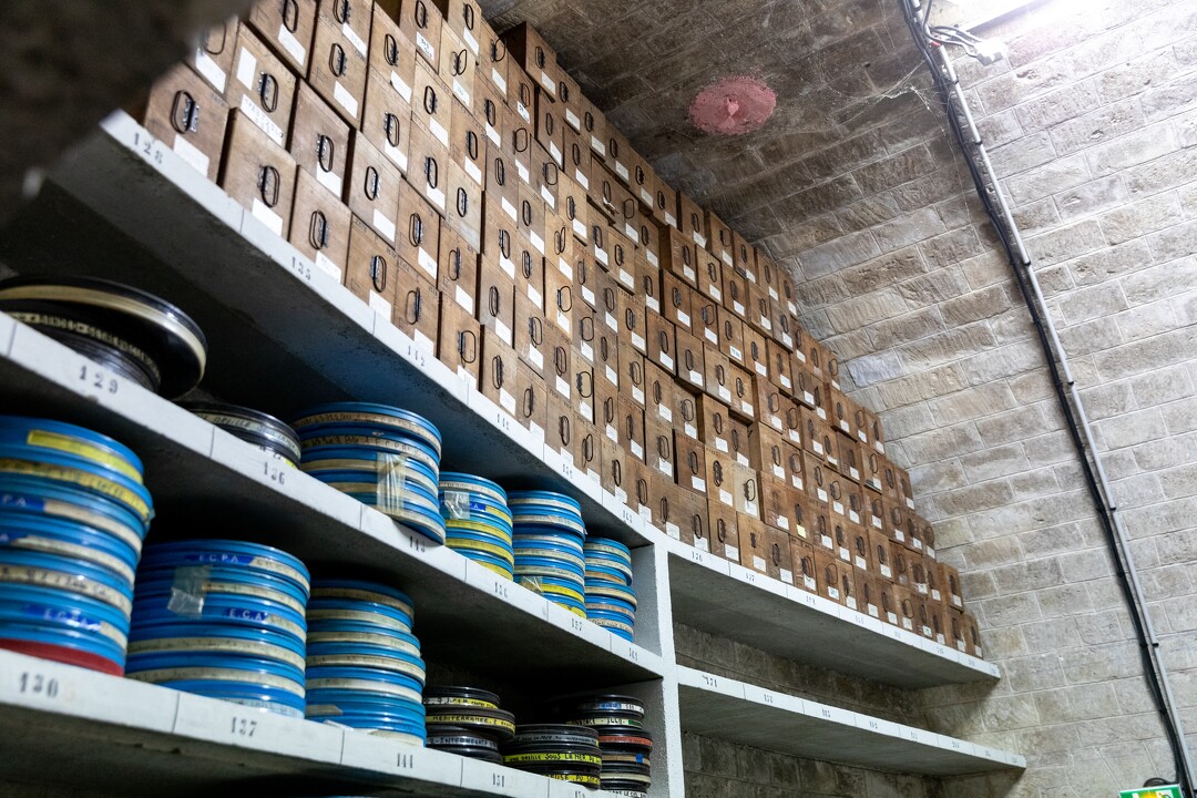 Né au sein du département d’histoire de l’art et d’archéologie de Paris 1 Panthéon-Sorbonne, l’atelier Montage d’archives a vu le jour en 2017. Dans le cadre de dernier, les étudiants du master 2 histoire du cinéma mènent leurs recherches sous la forme d’un court-métrage, réalisé essentiellement à partir des fonds photographiques et/ou cinématographiques de l’ECPAD. En traversant les longs couloirs voûtés du fort d’Ivry, d’une casemate à une autre, chaque porte permet de découvrir de nombreuses piles de bobines, de cassettes et de casiers contenant des archives en format papier laissant deviner la quantité importante d’informations conservées en ce lieu. En effet, cet établissement dispose de 15 millions de documents dans ses fonds et de 94 000 heures de film soigneusement conservés. Cette volumétrie est nourrie par la production interne de l’institution qui a commencé en 1915, par les images de l’armée et du ministère, par des fonds privés (depuis 1842) alimentés grâce aux particuliers qui les contactent ou encore par des achats réalisés durant certaines périodes historiques. Les fonds de l’ECPAD s’enrichissent ainsi constamment. Dans un souci de conservation, une grande partie des archives et plus particulièrement des bobines reste hébergée dans les casemates de la bâtisse assurant une température et une luminosité idéale.